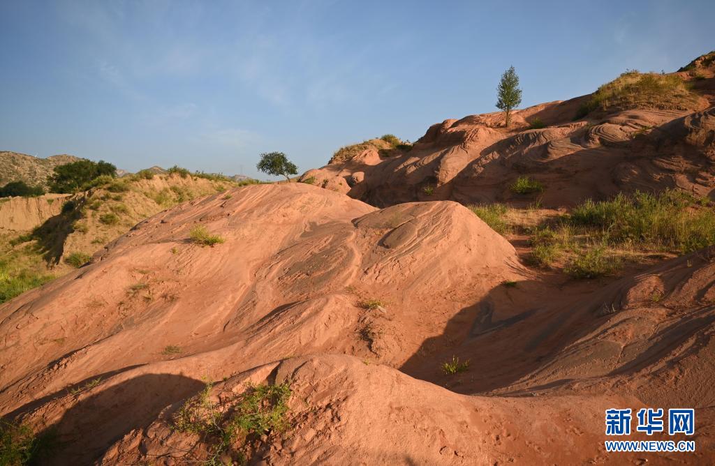8月6日,朝霞映照下的靖邊縣龍洲鎮波浪谷丹霞景區。