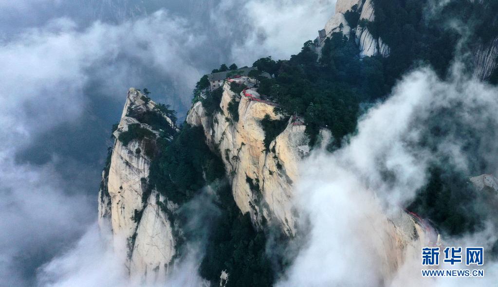 初秋時節,陜西省渭南市華山景區云霧飄蕩,如夢似幻宛如仙境。