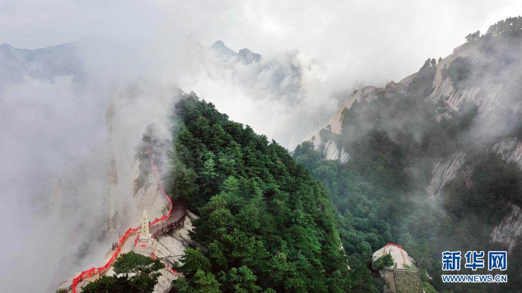 初秋時節,陜西省渭南市華山景區云霧飄蕩,如夢似幻宛如仙境。