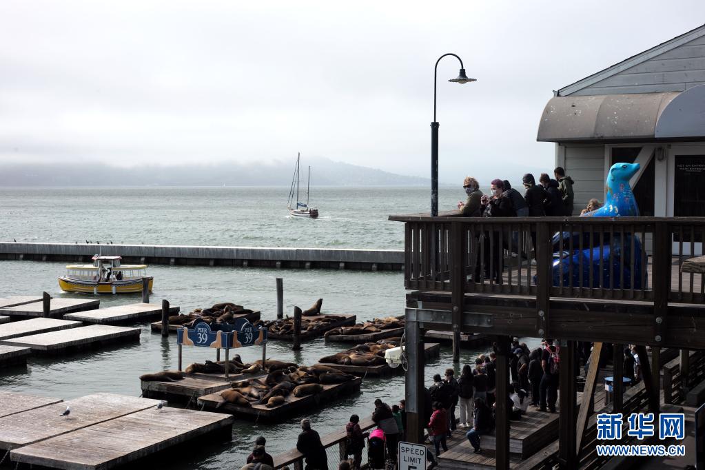 8月15日,人們?cè)诿绹f金山海邊觀看海獅。