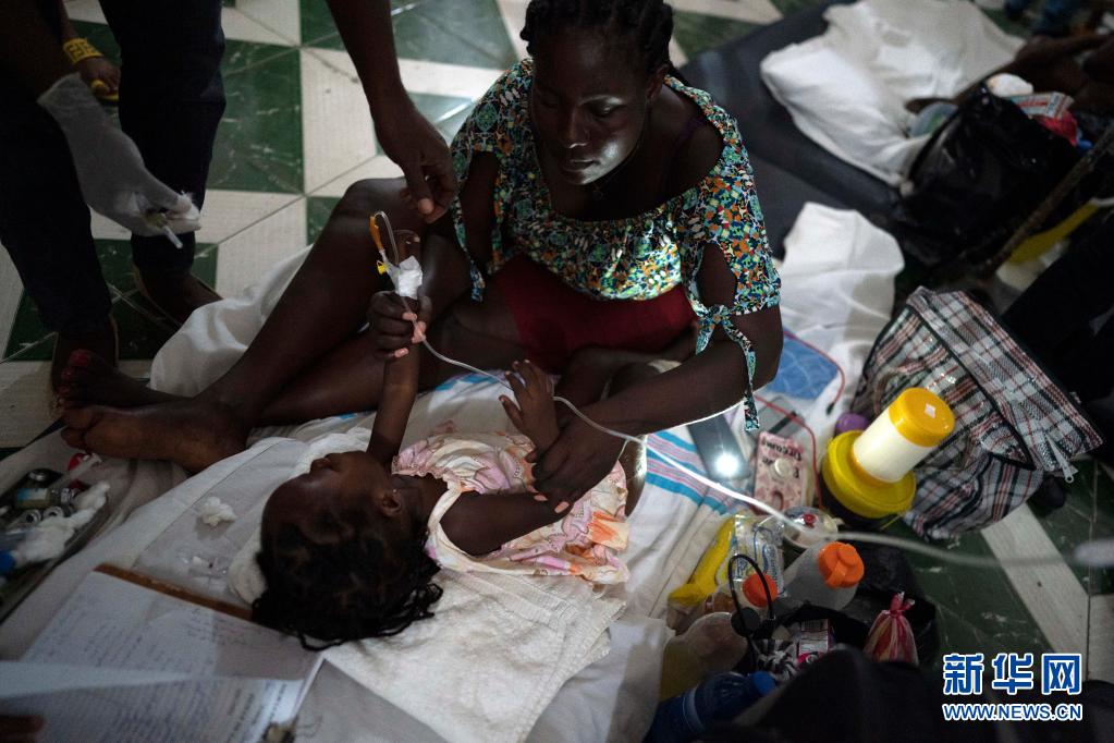 8月18日,在海地震中附近的萊凱的一家醫院,一名兒童接受治療。