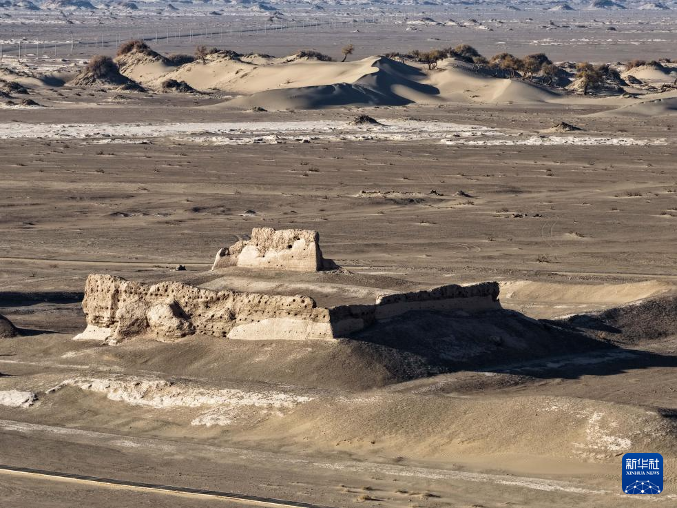 这是11月3日在内蒙古阿拉善盟额济纳旗拍摄的居延遗址中的唐代大同城遗址(无人机照片)。