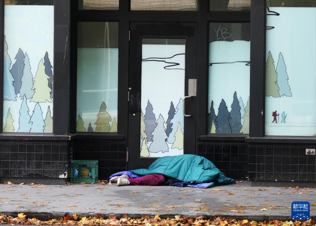 11月4日,在美国俄勒冈州波特兰,无家可归者在街头睡觉。