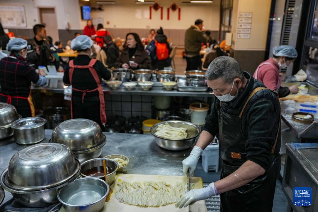 12月12日,在四川省广元市一家凉面馆,工作人员制作凉面。