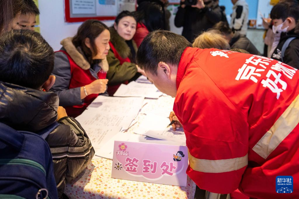 2月1日,在芙蓉区识字里社区服务中心,家长(右一)为学生办理入托手续。