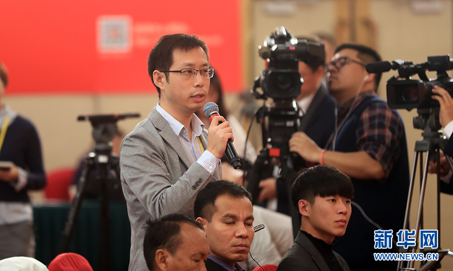 10月19日,十九大新聞中心舉行記者會(huì),邀請(qǐng)中紀(jì)委、中組部負(fù)責(zé)人介紹黨的建設(shè)和全面從嚴(yán)治黨相關(guān)情況。圖為中國日?qǐng)?bào)、中國日?qǐng)?bào)網(wǎng)記者提問。新華網(wǎng) 郝廣鵬攝