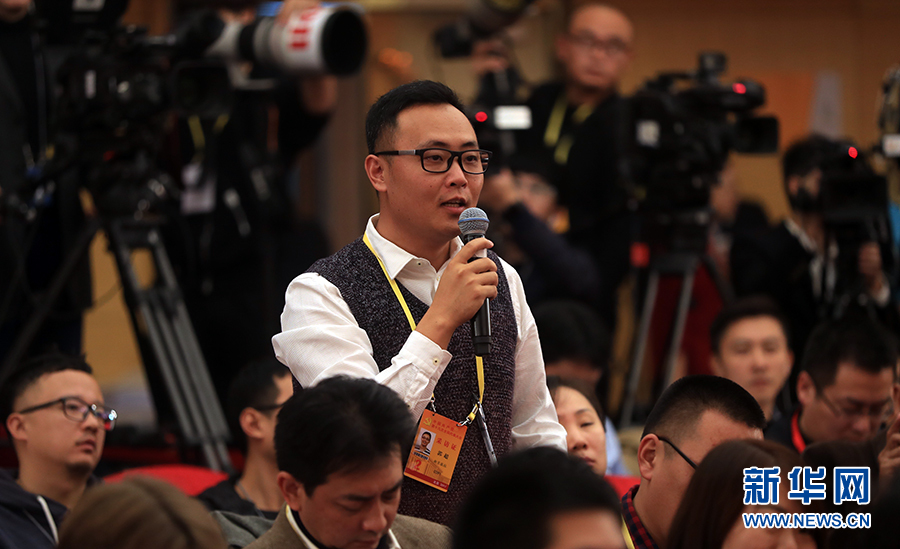 ??? 10月19日,十九大新聞中心舉行記者會,邀請中紀委、中組部負責人介紹黨的建設和全面從嚴治黨相關情況。圖為新京報記者提問。新華網 郝廣鵬攝