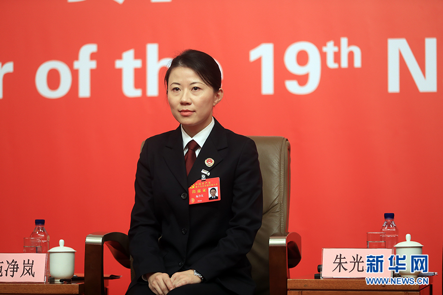 ??? 10月19日,十九大新聞中心舉辦集體采訪,邀請政法戰(zhàn)線代表談全面推進依法治國。圖為上海市浦東新區(qū)人民檢察院公訴二處命名檢察官施凈嵐。新華網(wǎng) 郝廣鵬攝