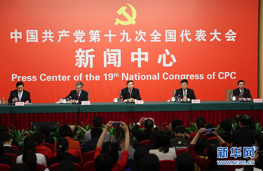 ??? 10月20日,十九大新聞中心舉行記者會,邀請中宣部、中央文明辦、文化部、新聞出版廣電總局相關(guān)負責人介紹加強思想道德和文化建設(shè)情況,并回答記者提問。圖為記者會現(xiàn)場。新華網(wǎng) 郝廣鵬 攝