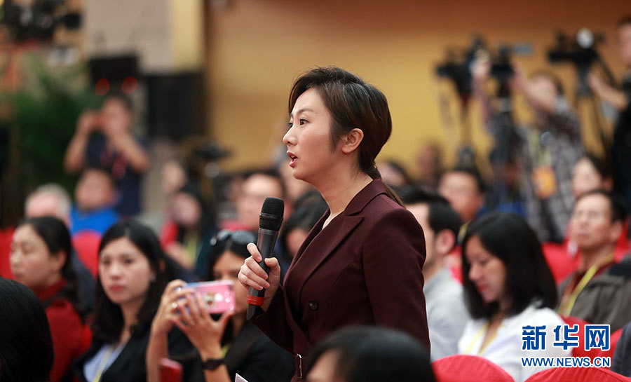 ??? 10月20日,十九大新聞中心舉辦集體采訪活動,主題為“文化發展開創新局面”。圖為中國國際電視臺記者提問。新華網 陳杰攝