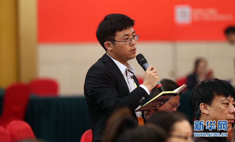 10月21日,十九大新聞中心舉辦集體采訪活動,主題為“農業科技創新”。圖為中國日報記者提問。新華網 郝廣鵬攝