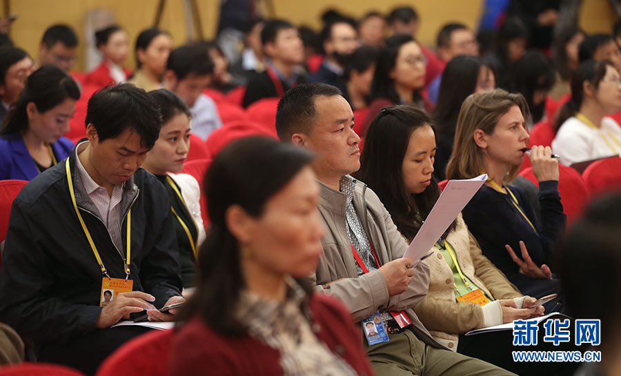 10月21日,十九大新聞中心舉辦集體采訪活動(dòng),主題為“農(nóng)業(yè)科技創(chuàng)新”。圖為現(xiàn)場記者。新華網(wǎng) 郝廣鵬攝