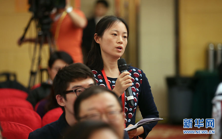 10月21日,十九大新聞中心舉辦集體采訪活動,主題為“農業科技創新”。圖為新華社記者提問。新華網 郝廣鵬攝