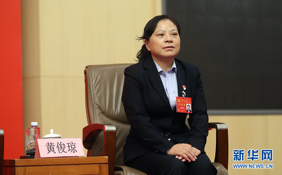 10月22日,十九大新聞中心在梅地亞中心二層新聞發布廳舉辦集體采訪活動,邀請教育領域代表談“教育綜合改革”。圖為貴州省黔東南州鎮遠縣江古鎮中心小學教師黃俊瓊。新華網 郝廣鵬攝
