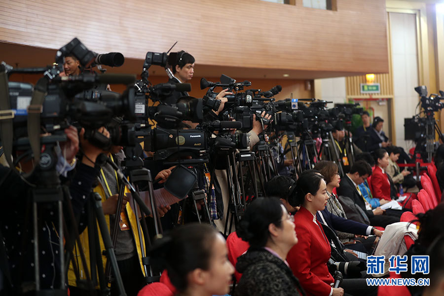 10月22日,十九大新聞中心在梅地亞中心二層新聞發(fā)布廳舉辦集體采訪活動,邀請教育領域代表談“教育綜合改革”。圖為集體采訪活動現(xiàn)場。新華網(wǎng) 郝廣鵬攝
