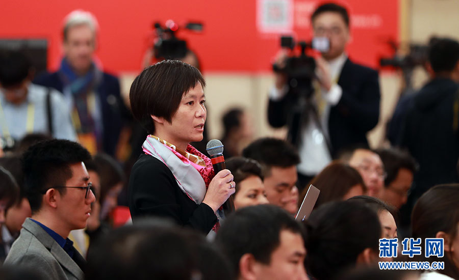 10月23日,十九大新聞中心舉辦記者招待會(huì),邀請(qǐng)中央財(cái)經(jīng)領(lǐng)導(dǎo)小組辦公室副主任楊偉民,環(huán)境保護(hù)部黨組書(shū)記、部長(zhǎng)李干杰介紹踐行綠色發(fā)展理念,建設(shè)美麗中國(guó)有關(guān)情況,并回答記者提問(wèn)。圖為中國(guó)青年報(bào)記者提問(wèn)。新華網(wǎng) 郝廣鵬攝