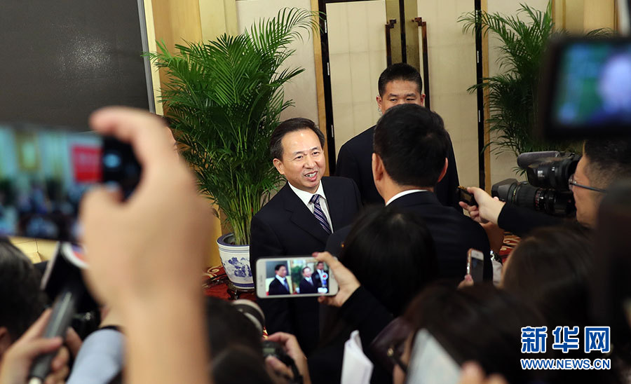 10月23日,十九大新聞中心舉辦記者招待會(huì),邀請(qǐng)中央財(cái)經(jīng)領(lǐng)導(dǎo)小組辦公室副主任楊偉民,環(huán)境保護(hù)部黨組書記、部長(zhǎng)李干杰介紹踐行綠色發(fā)展理念,建設(shè)美麗中國(guó)有關(guān)情況,并回答記者提問(wèn)。圖為環(huán)境保護(hù)部黨組書記、部長(zhǎng)李干杰接受記者采訪。新華網(wǎng) 郝廣鵬攝