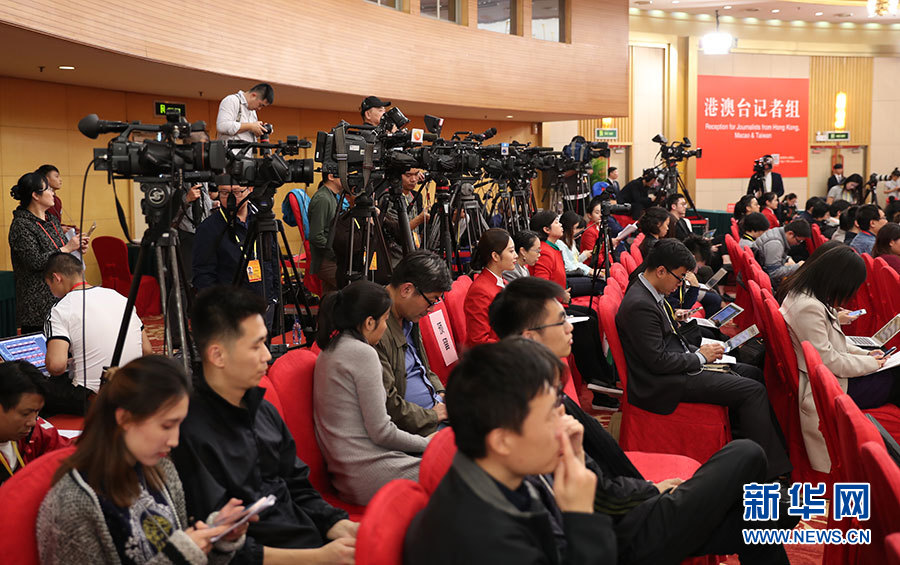 10月23日,十九大新聞中心舉辦集體采訪活動(dòng),主題為“打好生態(tài)環(huán)保攻堅(jiān)戰(zhàn)”。圖為現(xiàn)場記者。新華網(wǎng) 郝廣鵬攝