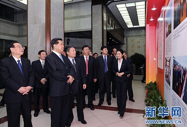 ??? 11月19日,全國政協主席賈慶林在北京全國政協禮堂參觀“綠色礦山建設成果展”。 新華社記者 饒愛民 攝