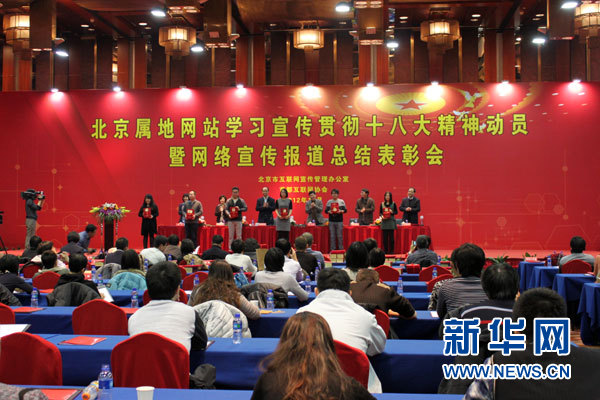 ??? 新華網北京11月28日電(記者 陳元)27日,北京市互聯網宣傳管理辦公室召開北京屬地網站學習宣傳貫徹黨的十八大精神動員大會暨網絡宣傳報道總結表彰會。