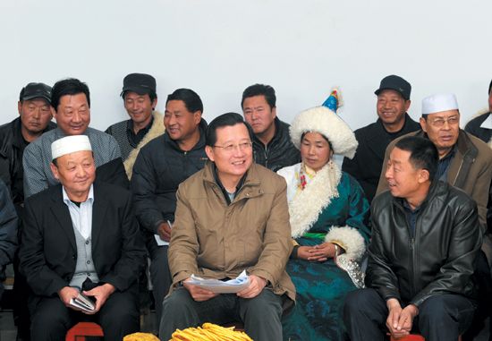 11月22日,省委書記、省人大常委會主任強衛深入貴德縣河陰鎮大史家村,面對面向基層黨員和農牧民群眾宣講黨的十八大精神。(記者 劉端強 攝)