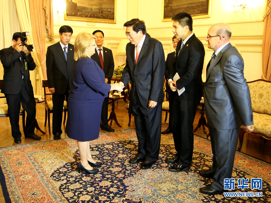 ??? 6月16日,在馬耳他首都瓦萊塔的總統府,郭金龍會見馬耳他總統普雷卡(前左一)。應邀對馬耳他進行友好訪問的中共中央政治局委員、北京市委書記郭金龍16日在瓦萊塔分別會見馬耳他總統普雷卡和總理、工黨領袖穆斯卡特。  新華社記者李佳攝