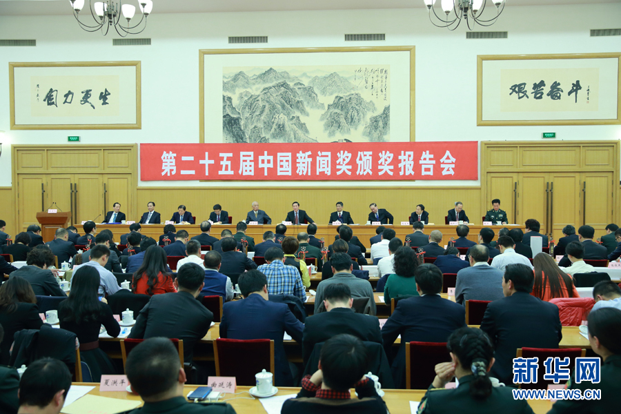 ??? 11月8日,第二十五屆中國新聞獎(jiǎng)?lì)C獎(jiǎng)報(bào)告會(huì)在北京舉行。中共中央政治局委員、中宣部部長劉奇葆出席報(bào)告會(huì)并講話。 新華社記者丁海濤攝