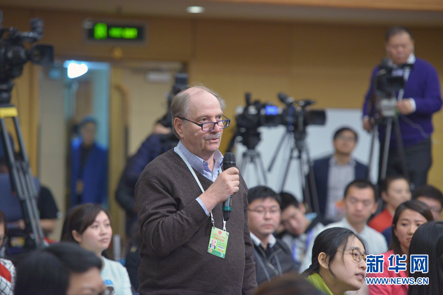 ???? 十二屆全國人大三次會議新聞中心于3月11日10時45分舉行記者會,邀請科技部部長萬鋼就科技改革與發展回答中外記者提問。圖為德國世界報記者提問。新華網/中國政府網 郭小天 攝