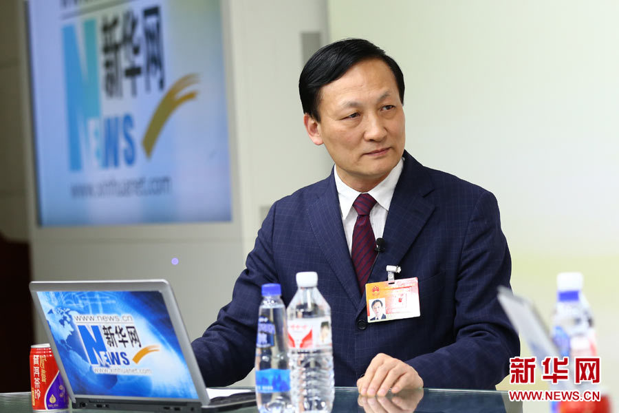 ??????? 2015年3月13日,全國人大代表,北京大學(xué)第三醫(yī)院骨科主任及脊柱外科研究所所長劉忠軍做客新華會客廳。新華網(wǎng) 李江 攝