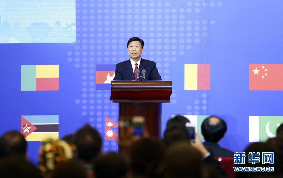 ??? 7月28日,首屆亞非青年聯歡節(jié)在北京人民大會堂開幕,國家副主席李源潮出席并致辭。新華社記者丁林攝