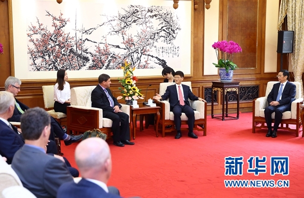 9月12日,中共中央政治局委員、中央政法委書記孟建柱在北京會見加拿大總理國家安全顧問丹尼爾·讓率領的首次中加高級別國家安全與法治對話加方代表團。新華社記者丁海濤攝