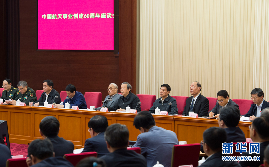 ????10月12日,中國航天事業創建60周年座談會在北京召開。中共中央政治局委員、國務院副總理馬凱出席座談會并講話,國務委員王勇出席座談會。新華社記者謝環馳攝