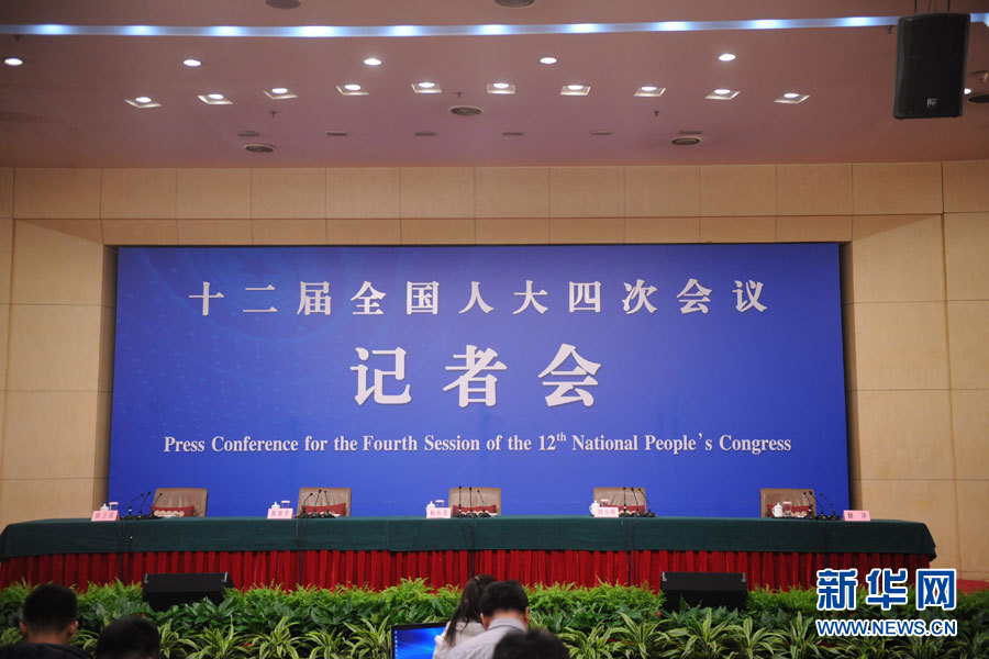 十二屆全國人大四次會議新聞中心于3月14日(星期一)10時在梅地亞中心多功能廳舉行記者會,邀請交通運輸部部長楊傳堂、交通運輸部運輸服務司司長劉小明、北京交通發展研究中心主任郭繼孚就“深化出租汽車改革與發展”的相關問題回答中外記者的提問。圖為記者會現場,記者會即將開始。新華網/中國政府網 陳杰 攝