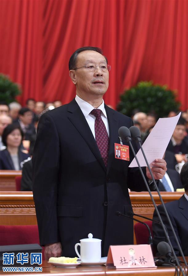 3月3日,中國人民政治協商會議第十二屆全國委員會第五次會議在北京人民大會堂開幕。杜青林主持開幕會。 新華社記者 李學仁 攝