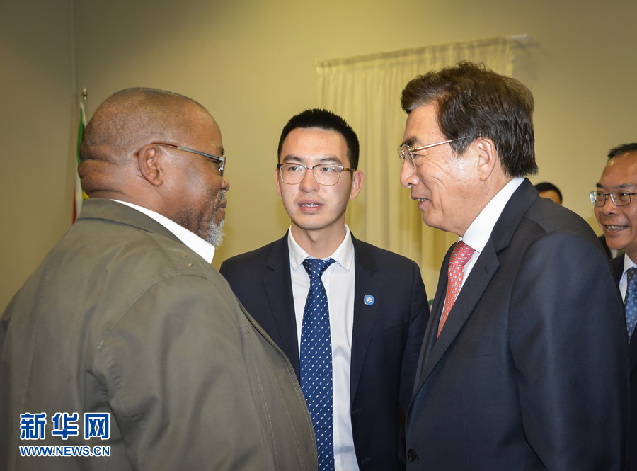 ??? 3月26日,中共中央政治局委員、北京市委書記郭金龍(前右)在南非約翰內斯堡與執政的南非非洲人國民大會總書記曼塔謝(前左)舉行工作會談。新華社記者趙熙攝