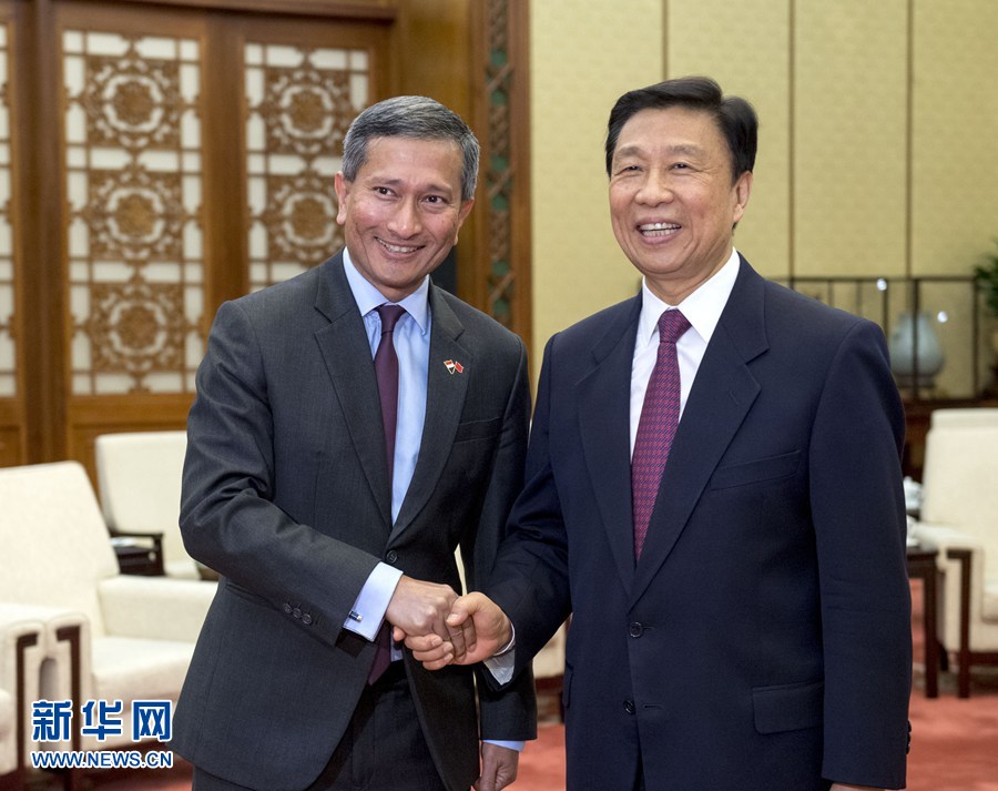 6月12日,國家副主席李源潮在北京會見新加坡外長維文。 新華社記者李學仁 攝