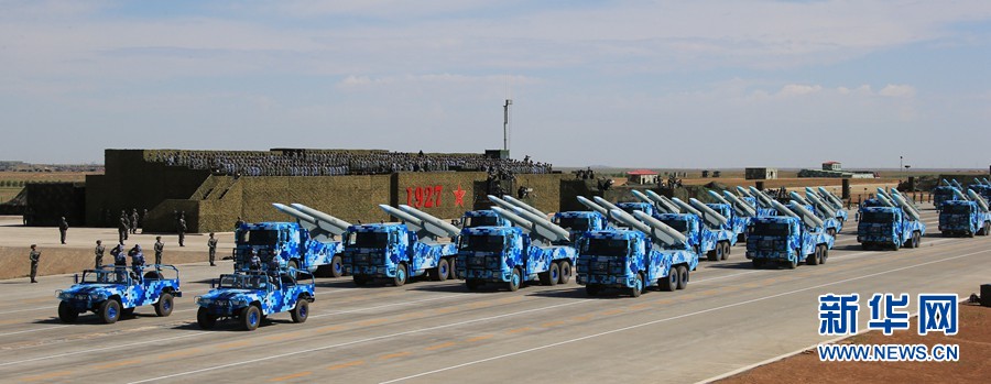 7月30日,慶祝中國人民解放軍建軍90周年閱兵在位于內蒙古的朱日和訓練基地舉行。中共中央總書記、國家主席、中央軍委主席習近平檢閱部隊并發表重要講話。這是海軍導彈第1方隊。新華社記者 查春明 攝