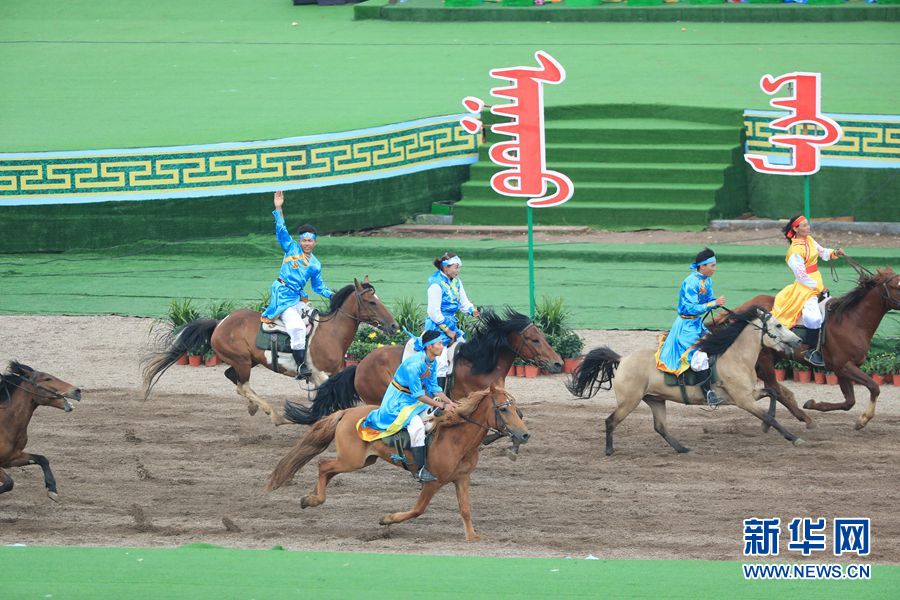 8月8日,內蒙古自治區成立70周年慶祝大會在呼和塔拉內蒙古少數民族群眾文化體育運動中心舉行。圖為群眾行進表演。新華網記者 陳杰 攝