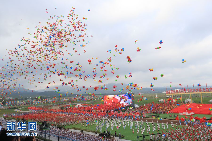 8月8日,內(nèi)蒙古自治區(qū)成立70周年慶祝大會在呼和塔拉內(nèi)蒙古少數(shù)民族群眾文化體育運動中心舉行。圖為群眾行進表演。新華網(wǎng)記者 陳杰 攝