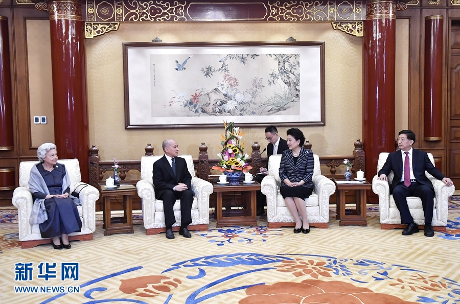 劉延?xùn)|會見柬埔寨國王西哈莫尼和太后莫尼列