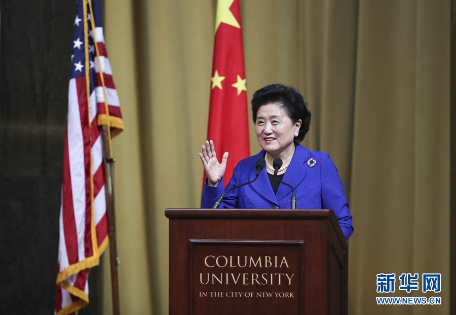 當?shù)貢r間9月26日,國務院副總理劉延東在紐約哥倫比亞大學出席中美大學校長與智庫論壇并發(fā)表主旨演講。 新華社記者 王迎 攝