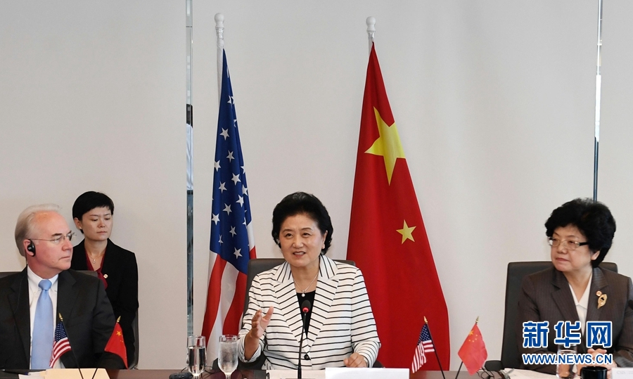 當(dāng)?shù)貢r(shí)間9月27日,國務(wù)院副總理劉延?xùn)|(中)在美國華盛頓戰(zhàn)略與國際問題研究中心出席中美衛(wèi)生合作研討會。新華社記者殷博古攝