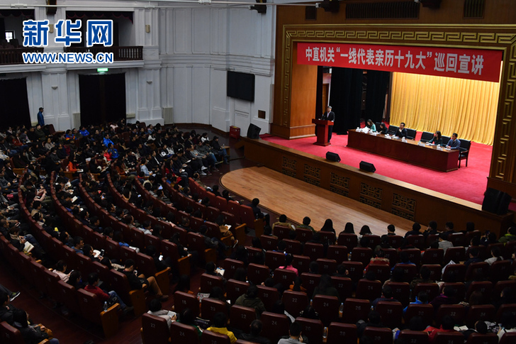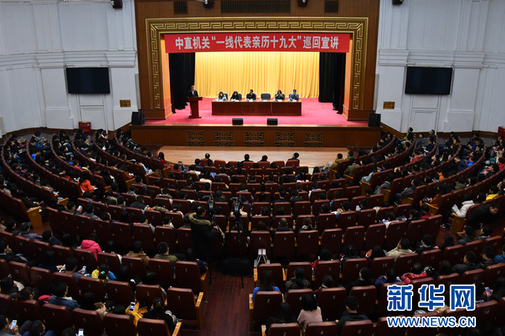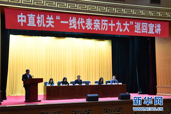 中直機關“一線代表親歷十九大”巡回宣講第三場報告會現場。新華社記者 徐速繪 攝