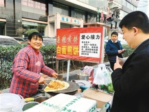 2007年,丈夫朱光偉突發腦溢血,一年的治療,讓夫妻倆早前打工攢下的十多萬元很快就見了底?!岸嗵潓W校給孩子免了學費,老師還送來衣服,周圍鄰居提米拿油沒少幫忙,我這才磕磕絆絆緩了過來?!薄斑@情誼怎么敢忘啊,人要學會感恩!”妻子趙彥蘋說?!皵[攤時,我看見有些流浪漢在垃圾桶撿吃的,我就試著給他們送些煎餅,算是一種力所能及的回饋。”