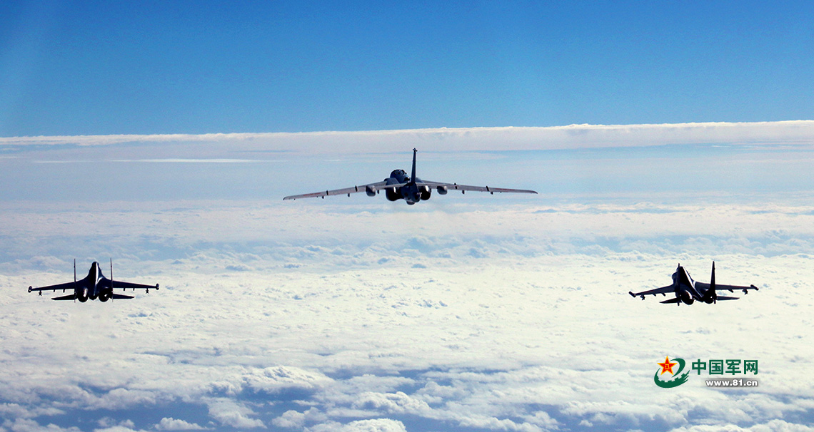 2017年11月,空軍航空兵某師組織轟-6K等多型多架戰機,前出第一島鏈編隊飛越巴士海峽和宮古海峽開展遠洋訓練,同時飛赴南海戰斗巡航。