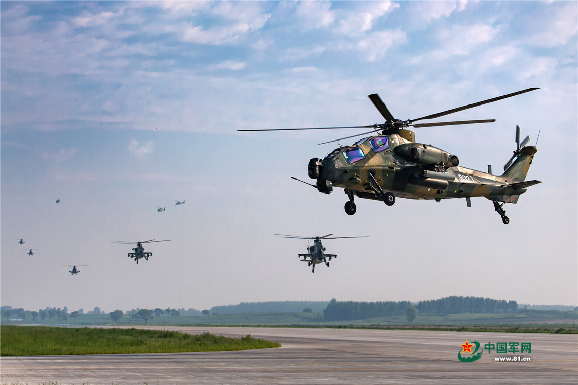 2017年8月,“國(guó)際軍事比賽-2017”航空飛鏢項(xiàng)目,中國(guó)空軍直升機(jī)編隊(duì)進(jìn)駐比賽機(jī)場(chǎng)。楊盼 攝影