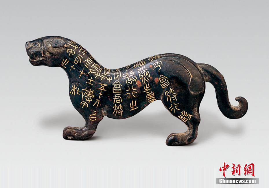 12月29日,全國30家文博機構聯合打造的“東方既白——春秋文物大聯展”在湖南省博物館對公眾開放,包括在央視《國家寶藏》中亮相的杜虎兵符,吳王夫差銅矛等在內的240件/套文物珍品,帶領觀眾重回“春秋戰國”。圖為杜虎兵符(左符)。 湖南省博物館供圖