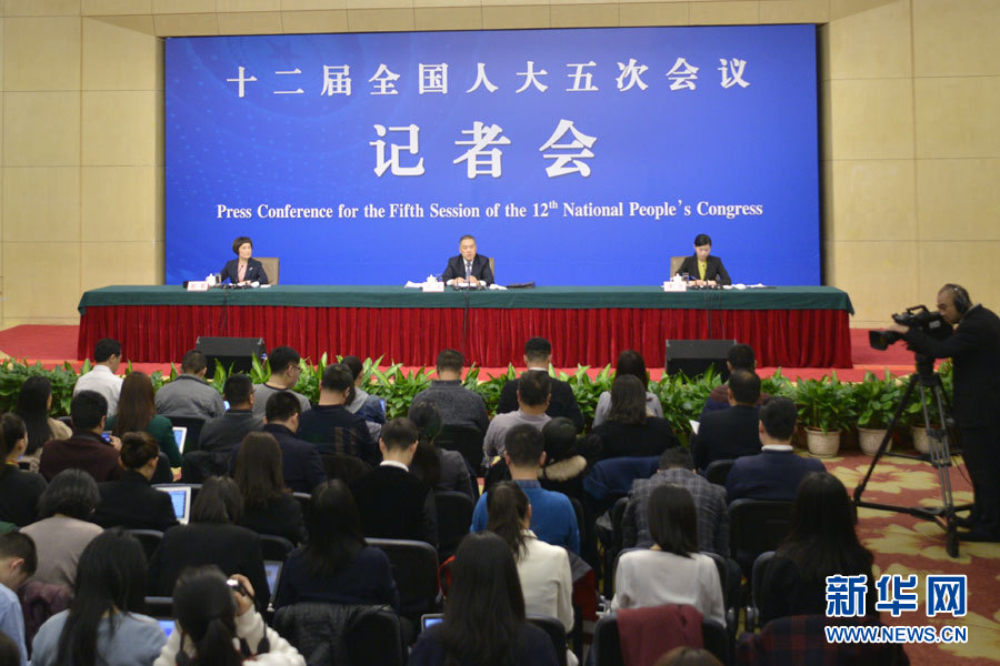 3月10日,十二屆全國人大五次會議新聞中心舉行記者會,邀請國家工商行政管理總局局長張茅就“深化商事制度改革”的相關問題回答中外記者的提問。圖為記者會現場。新華網/中國政府網?孫韜 攝