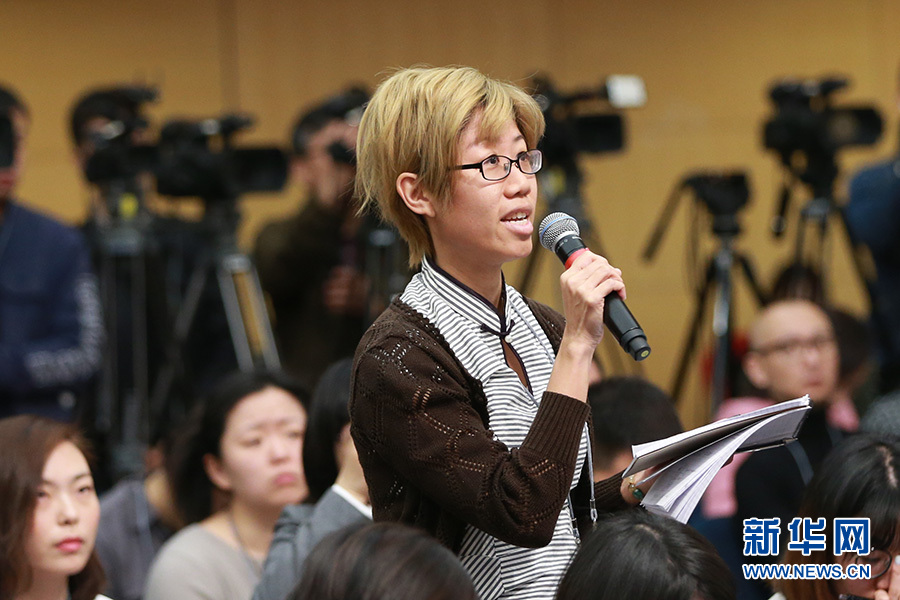 3月11日,十二屆全國人大五次會議新聞中心舉行記者會,邀請工業和信息化部部長苗圩、副部長辛國斌和總工程師、新聞發言人張峰就“推進實施‘中國制造2025’”的相關問題回答中外記者的提問。圖為新加坡海峽時報記者提問。新華網/中國政府網 傅義洲 攝