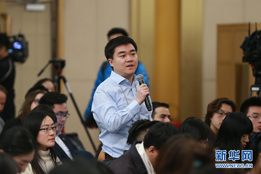 3月11日,十二屆全國人大五次會議新聞中心舉行記者會,邀請工業(yè)和信息化部部長苗圩、副部長辛國斌和總工程師、新聞發(fā)言人張峰就“推進(jìn)實(shí)施‘中國制造2025’”的相關(guān)問題回答中外記者的提問。圖為中國國際廣播電臺記者提問。新華網(wǎng)/中國政府網(wǎng) 傅義洲 攝